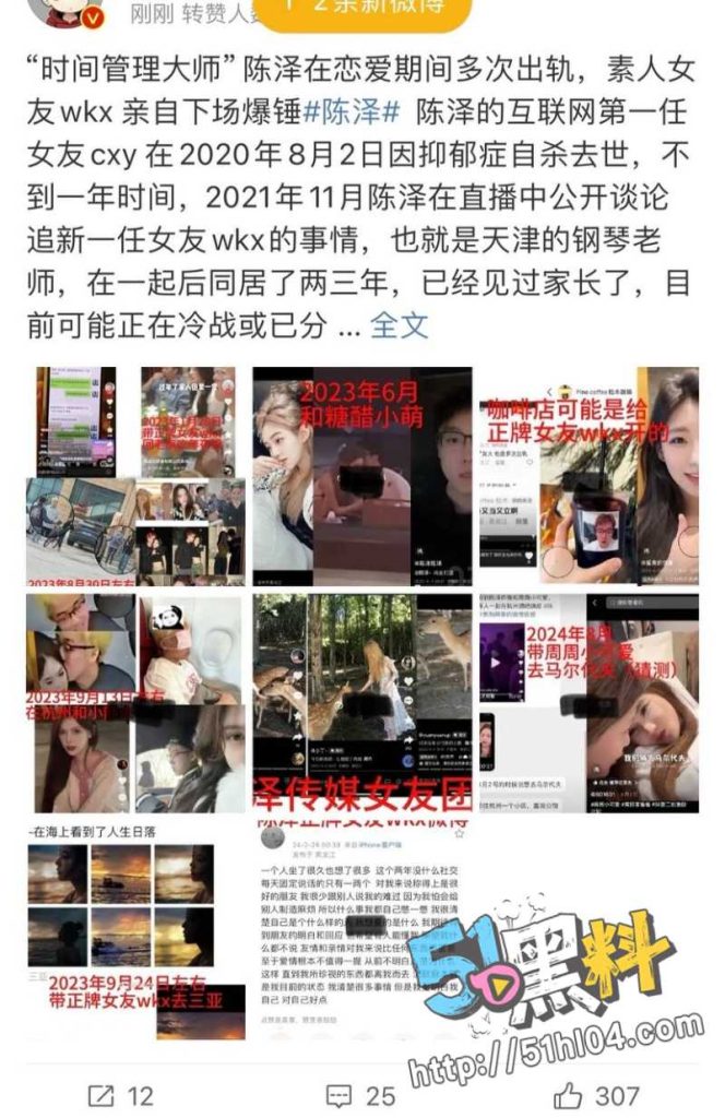 抖音1600万粉丝网红陈泽恋情曝光:前女友鲨鱼的饭盒(王可欣)出来撕陈泽,立单身人设,冷暴力等,说在一起期间陈泽多次出轨,今年3月因为出轨打起来了才搬出来,期间一边哄着王可欣一边和周周小可爱在一起!黑料不打烊最老官网下载更劲爆的是其实王可欣也是陈泽的小三转正的!接触了一年多才发朋友圈公开的,还老立深情人设!妥妥女篮球解说黑料视频在线观看的一个时间管理大师啊!还有一些梦女粉丝还在维护!